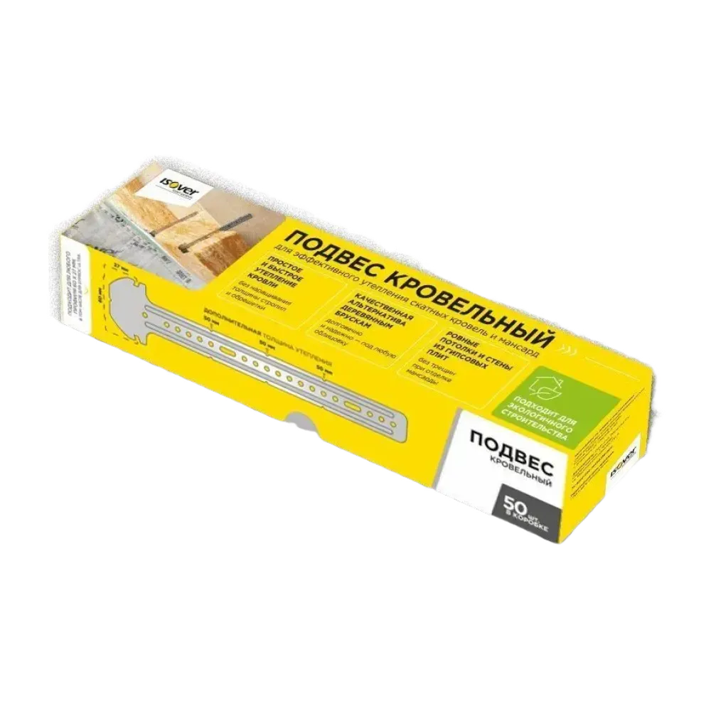 Уникальный подвес, разработанный с учетом нагрузок в наклонных конструкциях, который позволяет нарастить толщину утепления и создать ровную плоскость для отделки скатных кровель и мансард гипсовыми плитами или деревом.