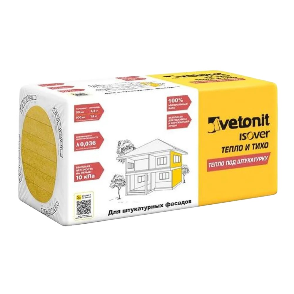 ISOVER Тепло под штукатурку - это минеральная тепло- и шумоизоляция на основе базальта для штукатурного фасада в малоэтажном строительстве. Жесткий материал со стабильной геометрией обеспечивают прочное сцепление клея и поверхности плит, а также удобно монтируются благодаря оптимальному весу. ISOVER Тепло под штукатурку защитит стены от промерзания и накопления влаги!