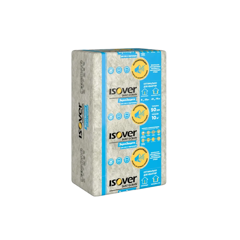 Vetonit (Isover) Звукозащита – минеральная шумоизоляция на основе кварца для устройства перегородок, облицовок и потолков.
