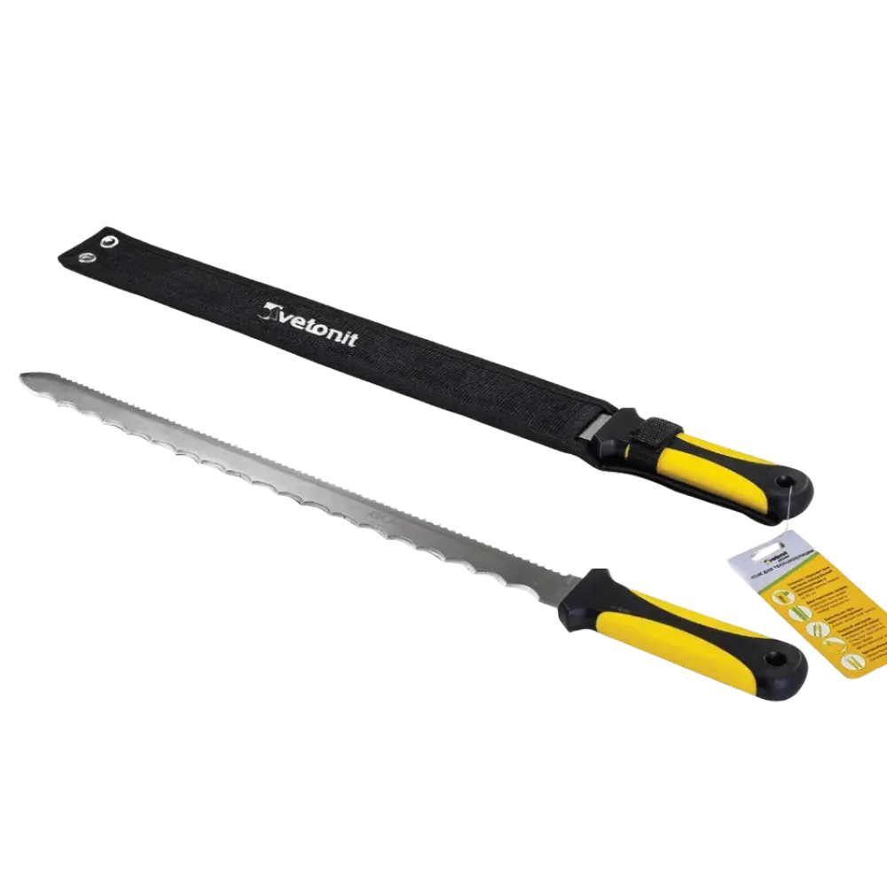 Нож для теплоизоляции ISOVER c длиной лезвия 42см разработан специально для теплоизоляции в рулонах, а также для жестких плит толщиной от 80 мм и выше. Разрезает минеральную вату любой плотности максимально ровно, быстро и удобно.
