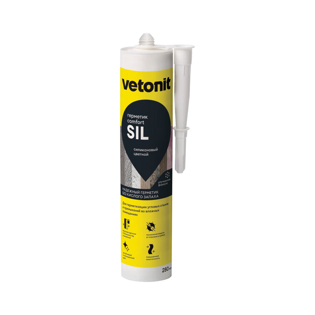 Ветонит (vetonit) comfort sil — это высококачественный силиконовый герметик на нейтральной основе, специально разработанный для герметизации стыков в местах повышенной влажности.