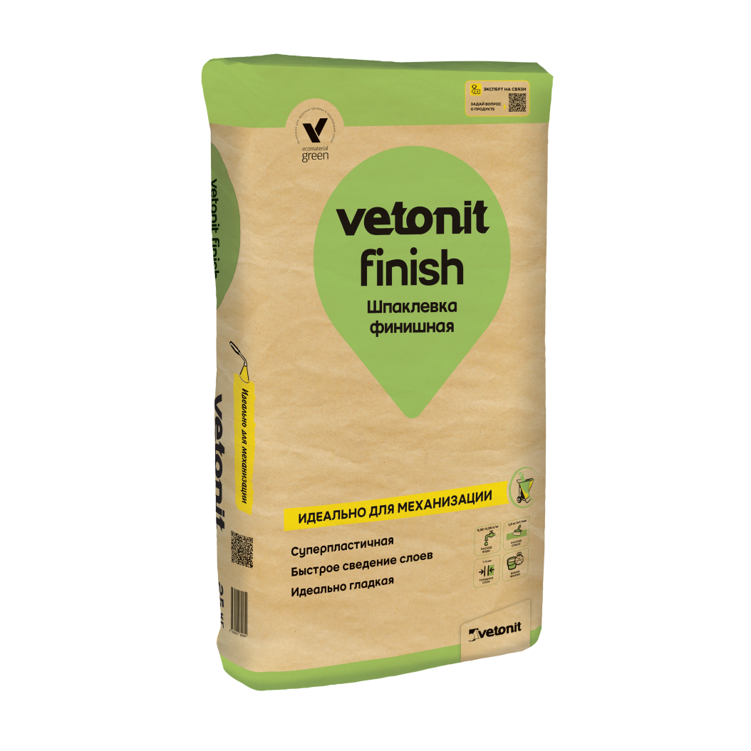 Ветонит (vetonit) finish - финишная шпаклевка на полимерном связующем предназначена для подготовки стен под последующую отделку (укрывистые обои, покраску структурными красками). Универсальная. Белая. Удобная в работе. Для внутренних работ в сухих помещениях. Качество поверхности после шлифовки не ниже К2 согласно СП 71.1330 2017.