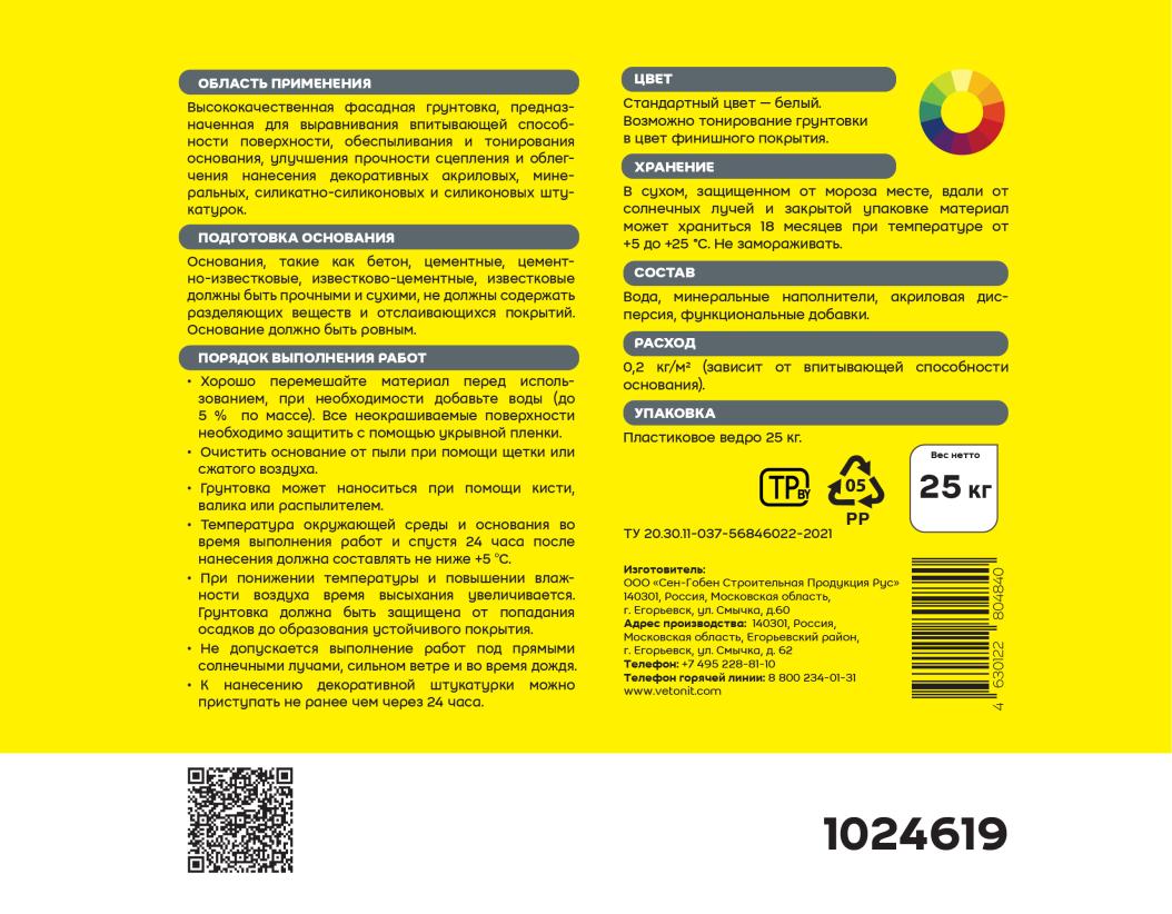 Ветонит (vetonit) prim uni – высококачественная фасадная тонирующая грунтовка для подготовки поверхности перед нанесением декоративных штукатурок на акриловой, силикатно-силиконовой, силиконовой основе.Выравнивает впитывающую способность основания, тонирует поверхность, облегчает нанесение декоративных штукатурок, укрепляет поверхность.
